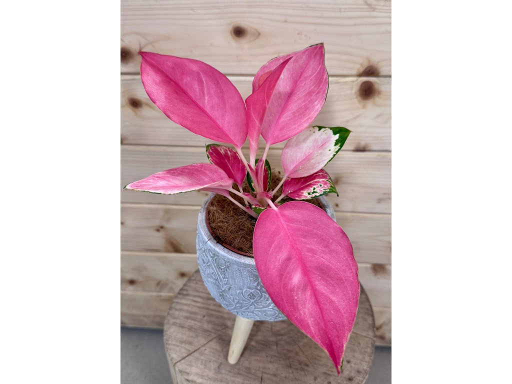 Aglaonema ‘Valkyrie’ je výrazná a charismatická pokojová rostlina s tmavě zelenými až téměř černými listy, které zdobí kontrastní růžové až lososové žilkování. Barevná kresba působí dramaticky, ale zároveň velmi elegantně, díky čemuž se rostlina stává nepřehlédnutelným solitérem v moderním interiéru. Ideální volba pro milovníky výrazných listových rostlin s osobitým charakterem.