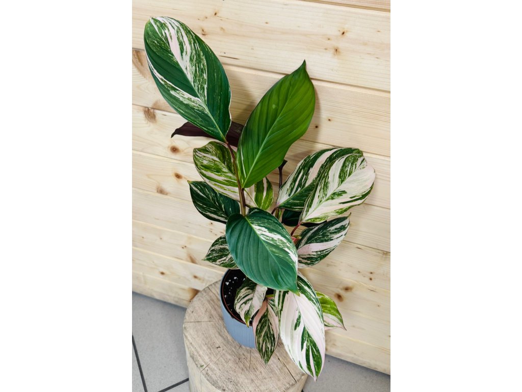 Calathea ‘Princess Dahlia’ je královsky elegantní rostlina, která zaujme svými nápadně vzorovanými listy. Horní strana listů hraje odstíny syté zelené s jemnými světlými pruhy, zatímco spodní strana má nádhernou purpurově vínovou barvu. Kombinace těchto barev dává rostlině luxusní a sofistikovaný vzhled, který vynikne v každém interiéru.