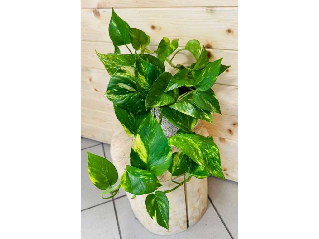 Epipremnum Hicolor je okouzlující liána s výrazně panašovanými listy v tónech zelené, krémové a žluté. Díky své pestré kresbě působí velmi dekorativně a dokáže rozzářit každý interiér. Roste poměrně rychle a můžete ji pěstovat jako převislou rostlinu v závěsném květináči nebo ji nechat pnout po opoře.
