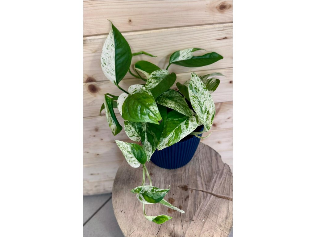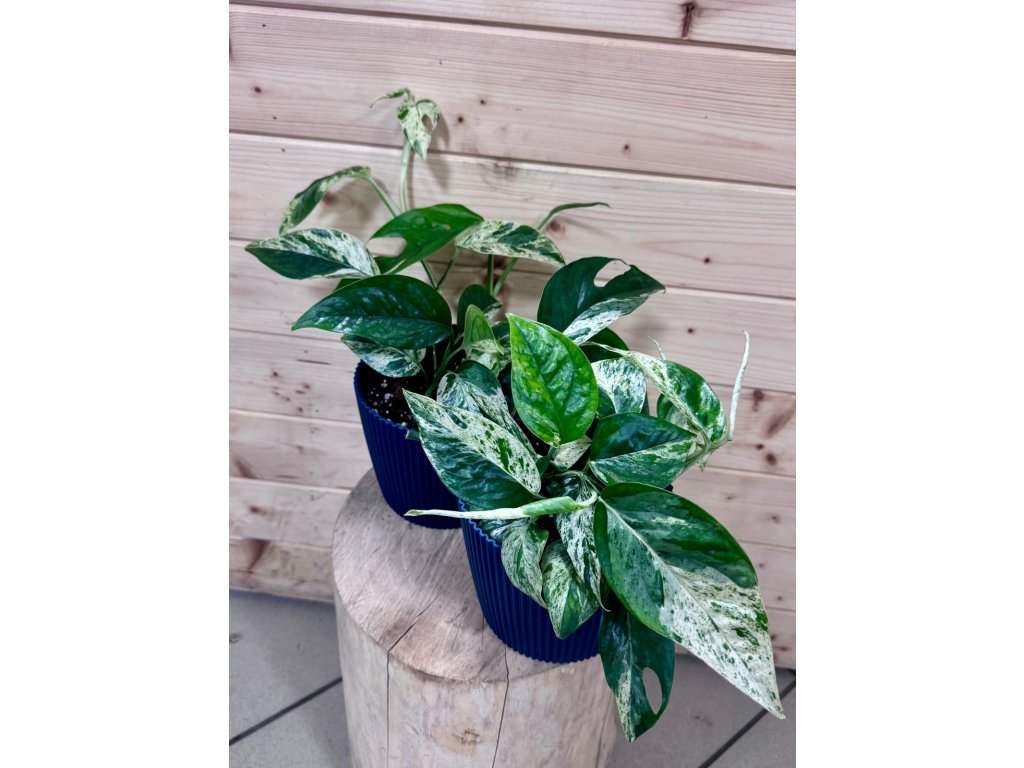 Epipremnum pinnatum ‘Marble Variegated’ je vysoce dekorativní a vyhledávaná panašovaná forma epipremna, která zaujme mramorovým vzorem v kombinaci zelené a krémově bílé barvy. Každý list je originál, s nepravidelnou kresbou, díky čemuž rostlina působí luxusně a živě. S věkem a oporou se listy mohou zvětšovat a vytvářet typické zářezy, což z ní dělá skutečný sběratelský kousek.