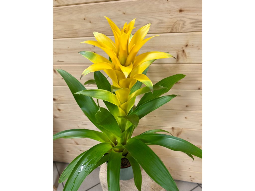 Guzmánie je nádherná tropická bromélie, která okouzlí svými elegantními listovými růžicemi a výrazným květním středem v odstínech červené, žluté, oranžové či růžové. Díky svému exotickému vzhledu působí jako živá dekorace a dokáže rozzářit jakýkoli interiér. Je nenáročná a ideální pro ty, kdo chtějí krásu bez složité péče.