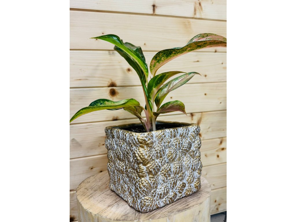 Hranatý zlatobílý květináč s abstraktním motivem