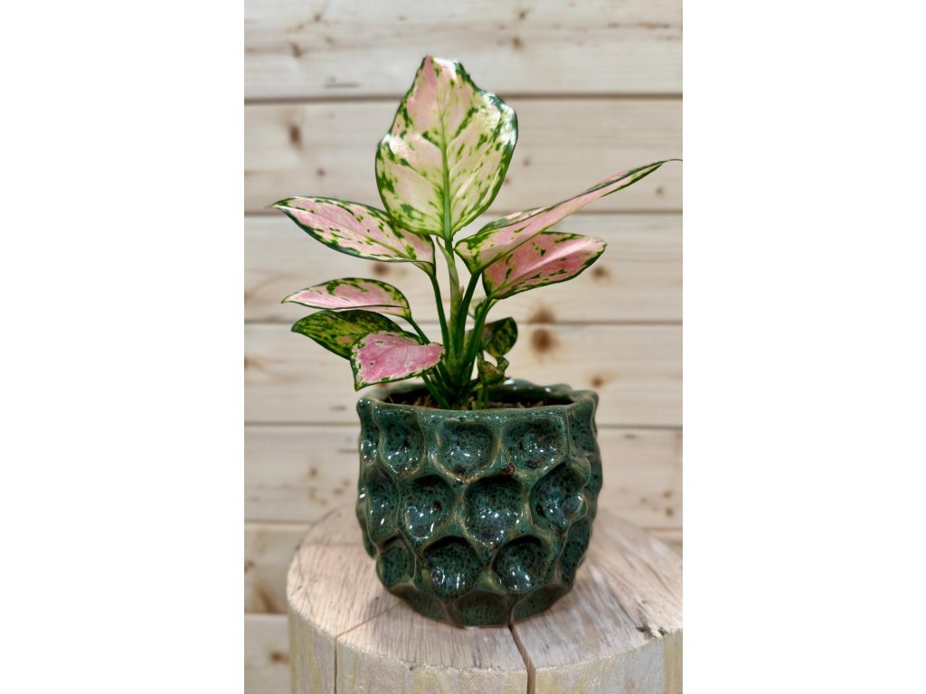 Tmavě zelený květináč se vzorem připomínajícím golfový míček působí originálně a hravě. Jeho unikátní textura dodává rostlinám zajímavý rám a oživí každý interiér či terasu. Stylový a odolný doplněk, který kombinuje design s praktičností.