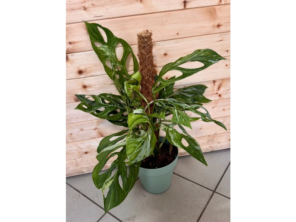 Monstera adansonii ‘Indonesian Marble’ je vzácná panašovaná forma oblíbené monstery s typickými perforovanými listy. Listy zdobí jemné mramorování v odstínech zelené, krémové a světle žluté, které vytváří unikátní, nepravidelný vzor. Každý list je originál – někdy s jemným žíháním, jindy s výraznějšími světlými plochami. Díky tomu patří mezi velmi vyhledávané sběratelské rostliny.