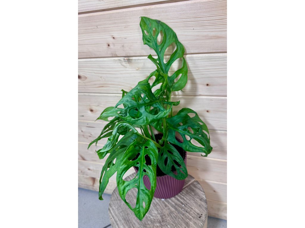 Monstera adansonii je ikonická popínavá rostlina známá svými děrovanými listy, které působí lehce, vzdušně a exoticky. Každý list má originální tvar i perforaci, díky čemuž je rostlina nepřehlédnutelná a velmi dekorativní. Skvěle se hodí do závěsných květináčů, na police i k oporám, kde může vytvořit hustý zelený porost.