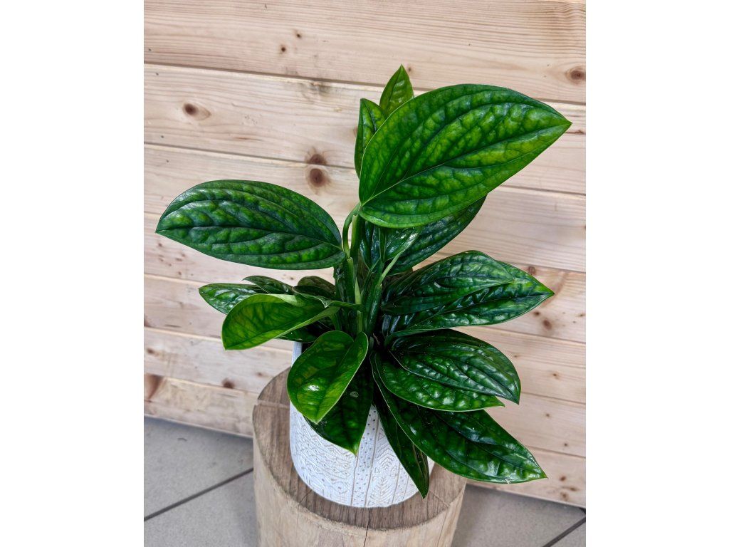 Monstera Peru je výrazná tropická rostlina známá svými tmavě zelenými, silně strukturovanými listy. Listy mají hluboce reliéfní povrch a lesklý vzhled, díky čemuž působí velmi exoticky a luxusně. Na rozdíl od jiných monster listy obvykle netvoří děrování, ale právě jejich plastická textura dělá z této rostliny jedinečný dekorativní kousek.