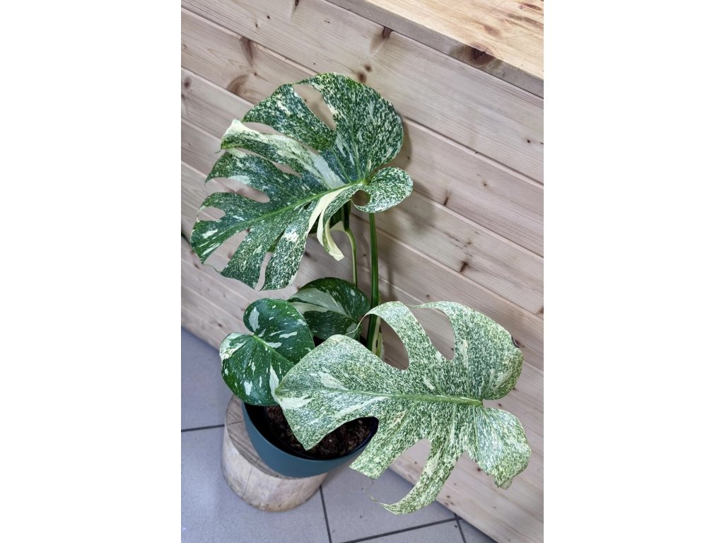 Monstera ‘Starlight’ je velmi vzácná a velmi dekorativní monstera s jemným krémově bílým panašováním rozesetým po sytě zelených listech jako drobné hvězdy na noční obloze. Každý list je originál – kresba se liší intenzitou i rozmístěním světlých skvrn, což dělá z této rostliny skutečný sběratelský kousek. Díky svému vzhledu působí luxusně, ale zároveň přirozeně a svěže.