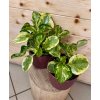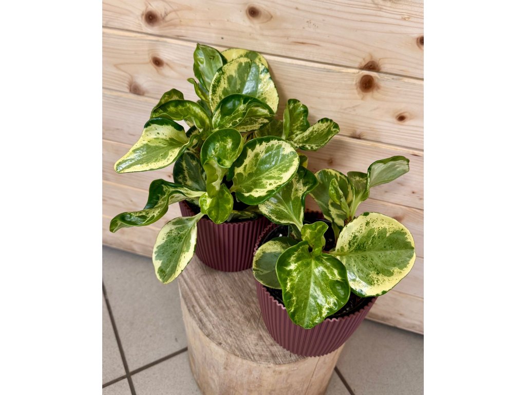 Peperomia ‘Golden Gates’ je atraktivní pokojová rostlina s jemně panašovanými listy v odstínech zelené, krémové a světle žluté. Listy mají lehce plastický povrch a vytvářejí kompaktní, hustý trs, který působí velmi upraveně a dekorativně. Díky své menší velikosti je ideální na stůl, poličku nebo do menších prostor.