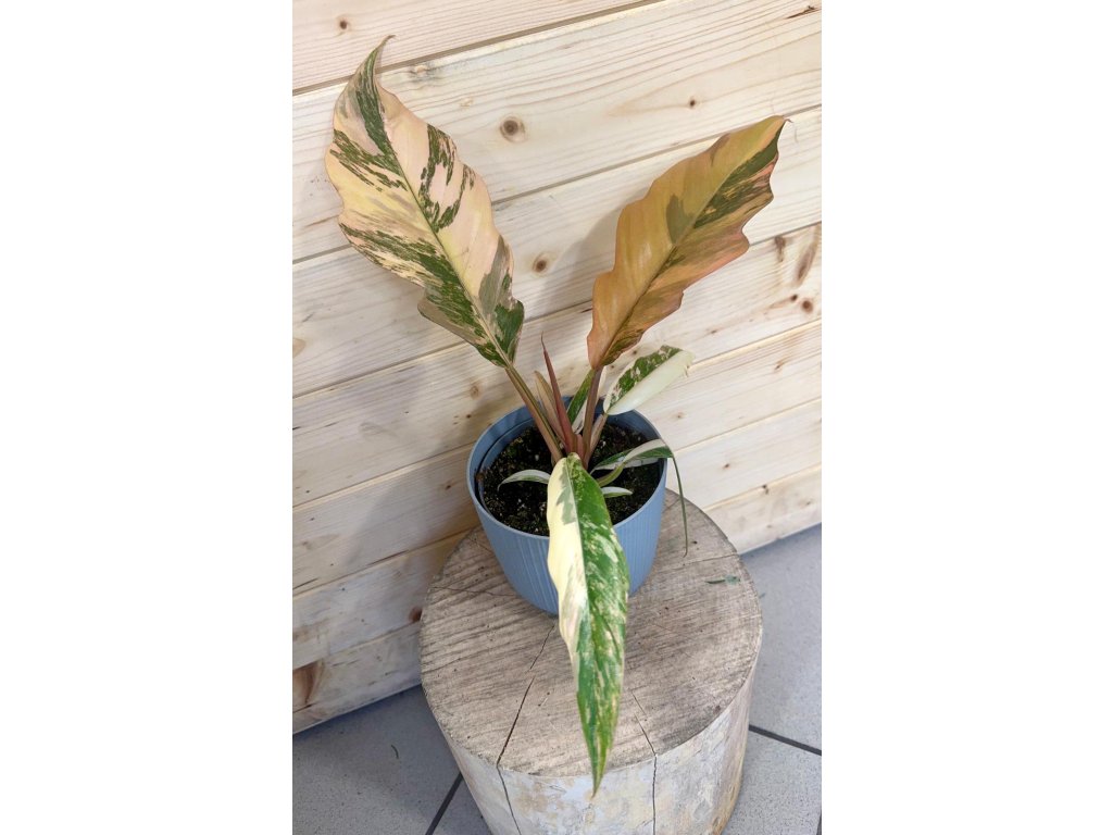 Philodendron ‘Caramel Marble’ je vysoce ceněná a sběrateli vyhledávaná odrůda s nádherným panašováním, které kombinuje tóny karamelové, broskvové, krémové a zelené. Každý list je jedinečný – někdy jemně melírovaný, jindy výrazně mramorovaný do teplých barevných odstínů. Díky svému luxusnímu vzhledu působí jako skutečný klenot mezi aroidy a stane se dominantou každé rostlinné kolekce.