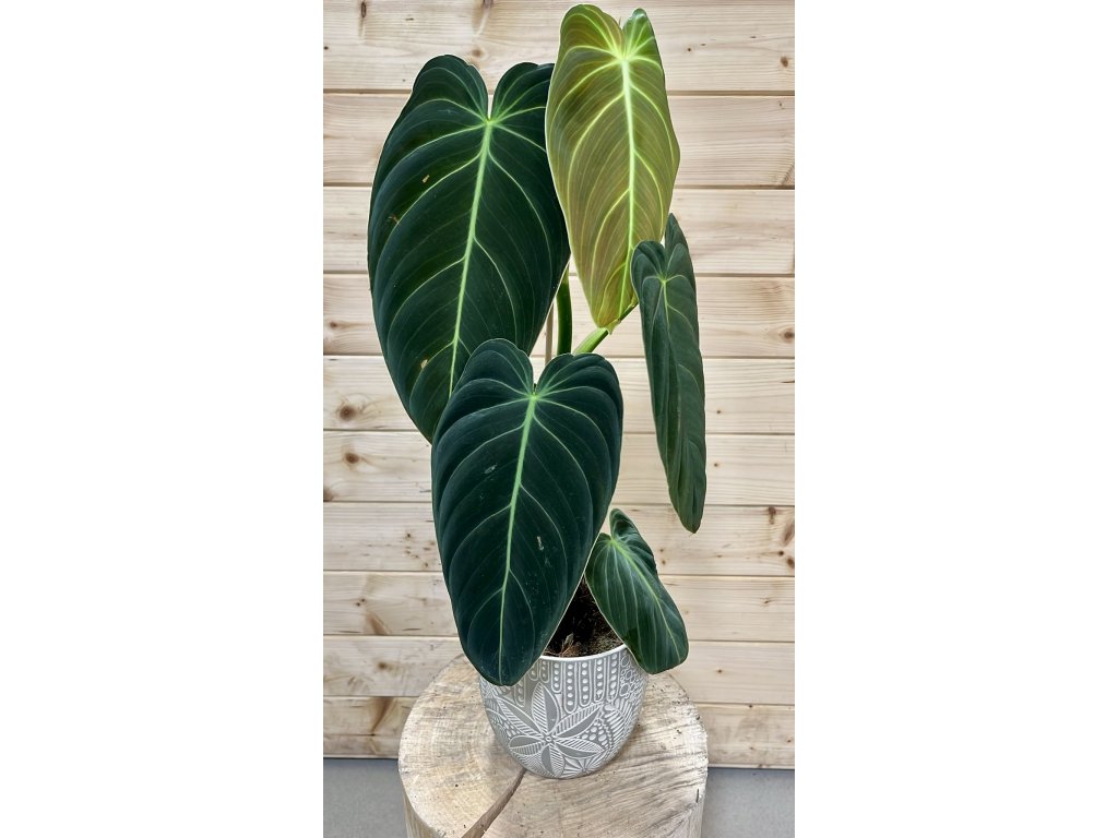 Philodendron melanochrysum je vysoce ceněná a elegantní popínavá rostlina známá svými sametově tmavě zelenými listy s jemným zlatavým žilkováním. Listy jsou podlouhlé, měkké na dotek a při správné péči dorůstají impozantních rozměrů. Díky svému hlubokému odstínu a hebkému povrchu působí velmi luxusně a je oblíbenou volbou sběratelů i milovníků výrazných tropických rostlin.
