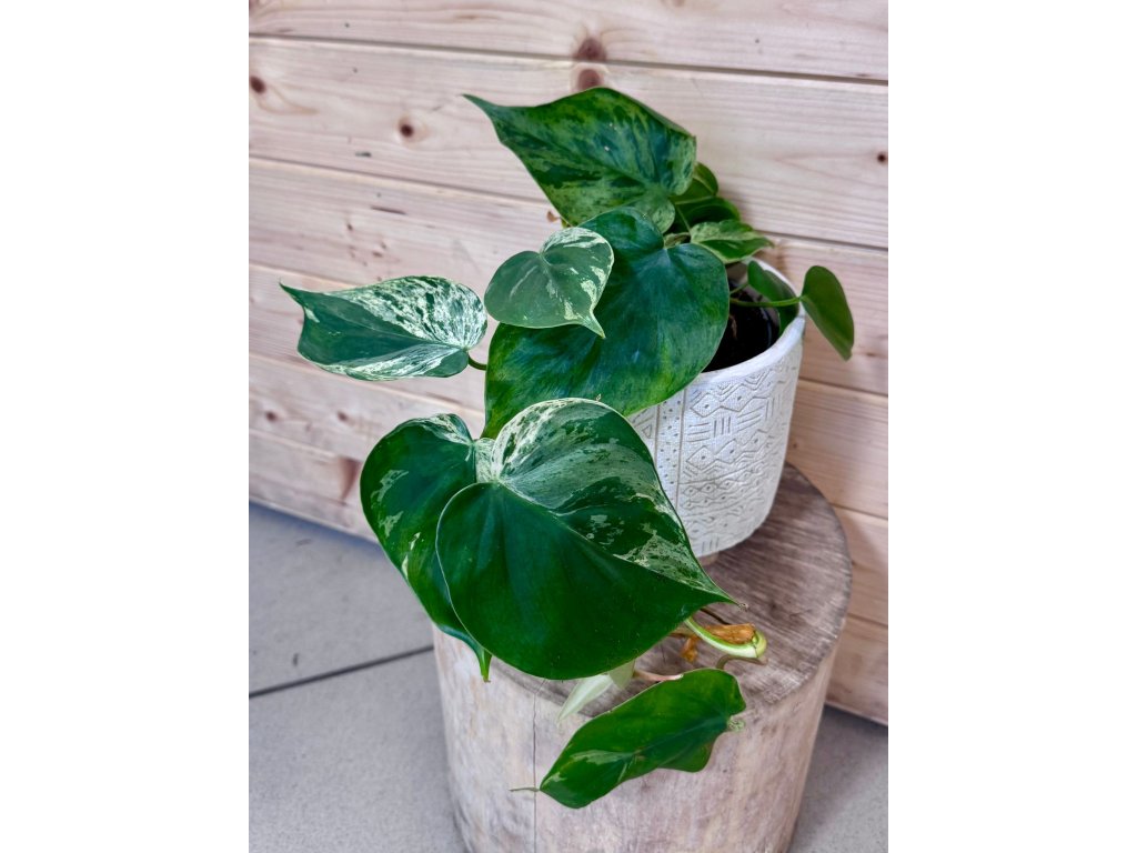 Philodendron scandens ‘Variegated’ je krásná panašovaná varianta oblíbeného popínavého filodendronu. Jeho srdčité listy zdobí nepravidelné krémové až světle zelené panašování, díky kterému je každý list jedinečný. Rostlina působí velmi svěže a přirozeně a skvěle se hodí jak do závěsných květináčů, tak na oporu, po které může šplhat.