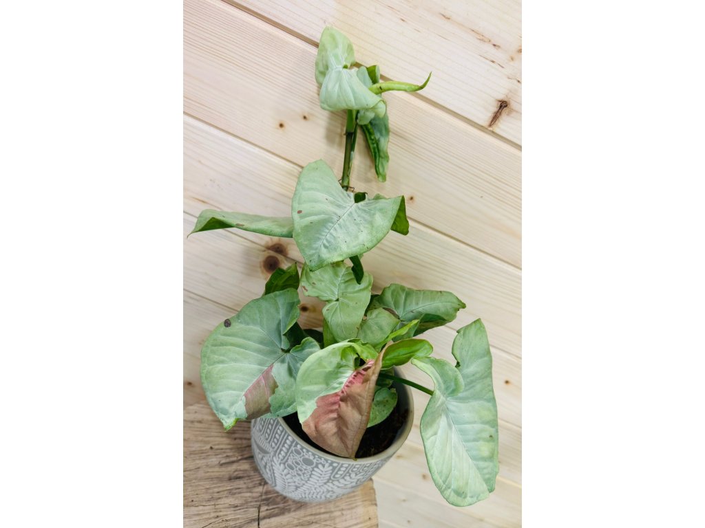 Syngonium je popínavá rostlina a může být vedena po podpoře (např. tyči nebo treláži). Pokud nechcete, aby rostlina lezla, můžete ji pravidelně zkracovat.