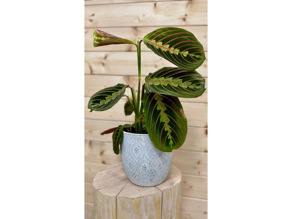 Zelenobílý ornamentální květináč působí svěže a elegantně. Dekorativní vzor v kombinaci s přírodními barvami podtrhne krásu rostlin a skvěle zapadne do interiéru i na terasu. Kvalitní provedení zaručuje dlouhou životnost a snadnou údržbu.